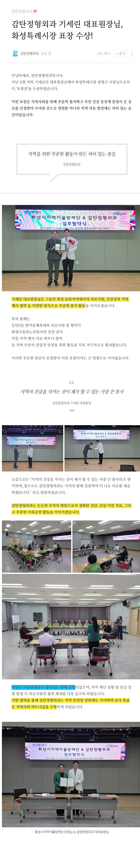 감탄정형외과 기세린 대표원장님, 화성특례시장 표창 수상!