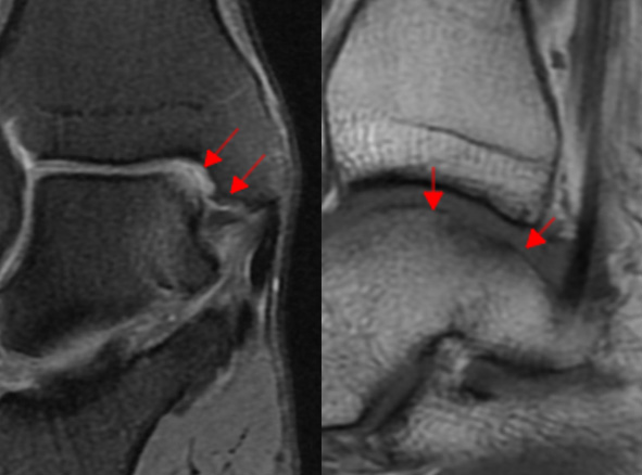 발목 염좌, 골절, 탈구 등 급성 외상으로 인해 연골이 손상될 수도 있으며, 과도한 사용으로 인해 발목 관절에 반복적인 충격이 가해지면