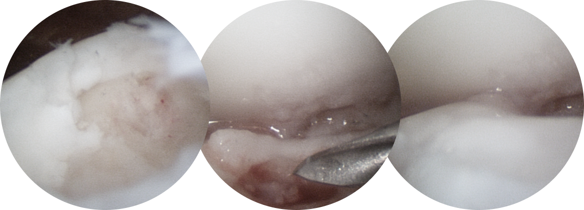 연골 재생술을 같이 하는 것이 계획되었다면 콜라겐 혹은 줄기 세포로 결손부위를 도포해줍니다.