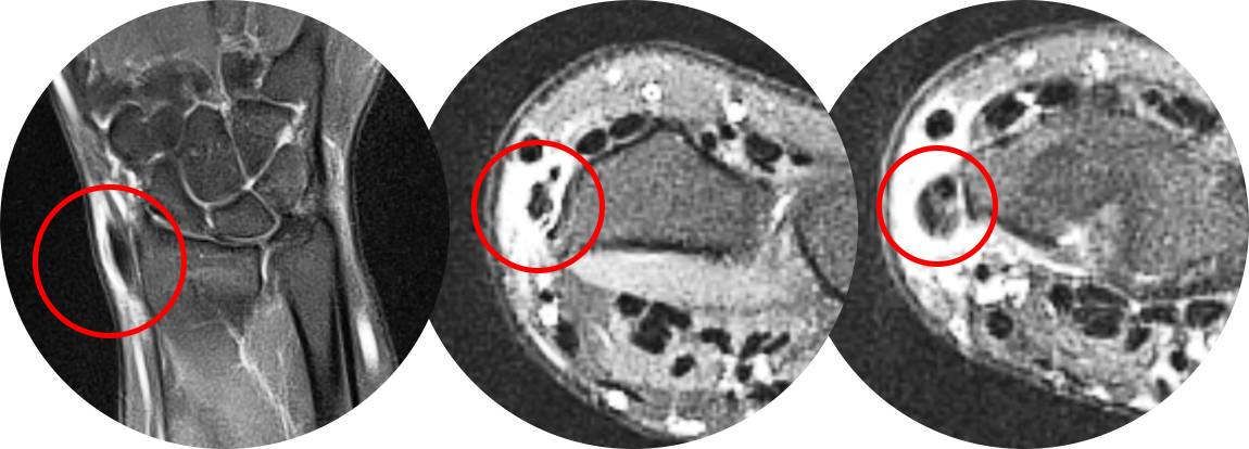 다음 사진처럼 천층 요골신경 분지, 장무지외전건(APL), 단무지신건(EPB) 3가지 구조물에 대한 확인을 시행합니다.