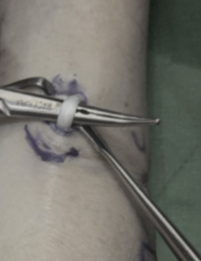 개방형 제1신전지대 유리술은 다음 그림 처럼 1.5~2cm 정도의 횡방향의 최소 절개로