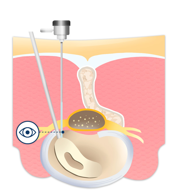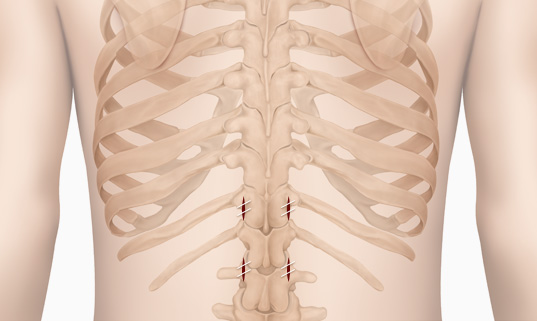 병변 부위에 1~2cm 구멍 4개를 뚫어 통증을 일으키거나 손상된 뼈 또는 디스크를 제거하고