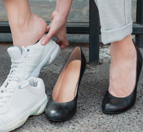 • 신발을 신었을 때 통증이 심해지며, 걷거나 서 있을 때 불편함을 느낌
