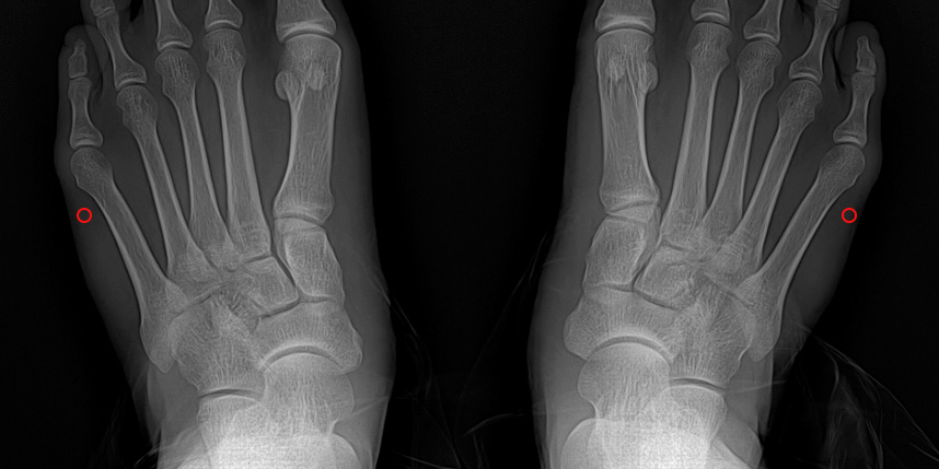 발뼈의 구조를 확인하고, 변형 정도를 정확하게 파악하는 데 도움을 줍니다.