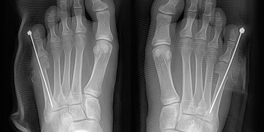 • 심한 경우 새끼발가락이 다른 발가락 쪽으로 휘어지거나 겹칠 수 있음