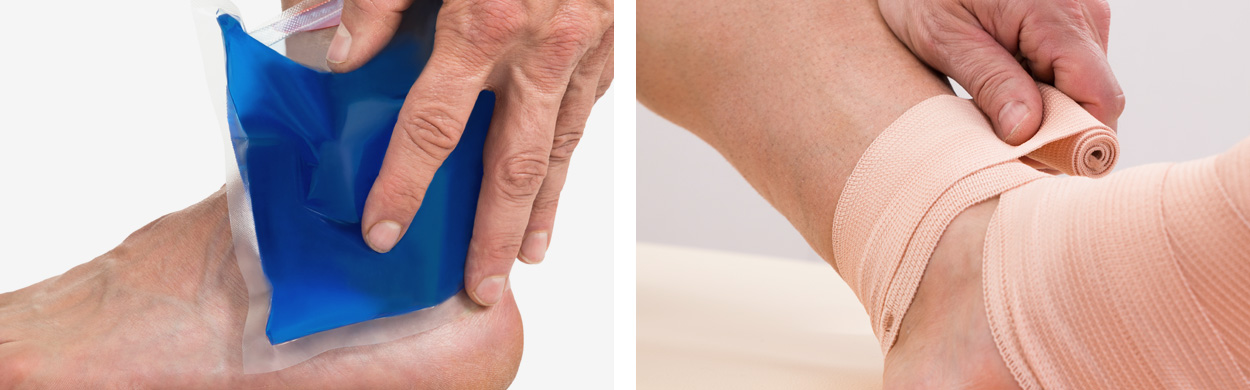 휴식, 냉찜질, 압박, 거상(RICE 요법) 등을 시행합니다.