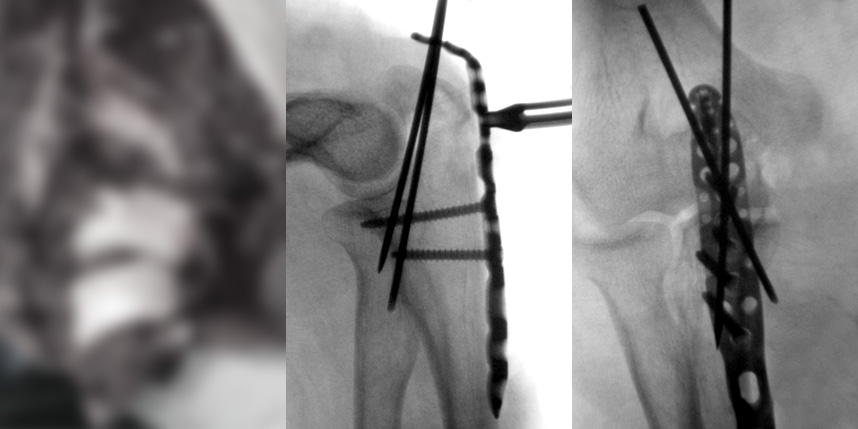 골절은 정확하게 골절편을 잘 맞추고 고정하는 것이 중요합니다. 특히 관절면을 잘 맞추는 것이 중요합니다.
